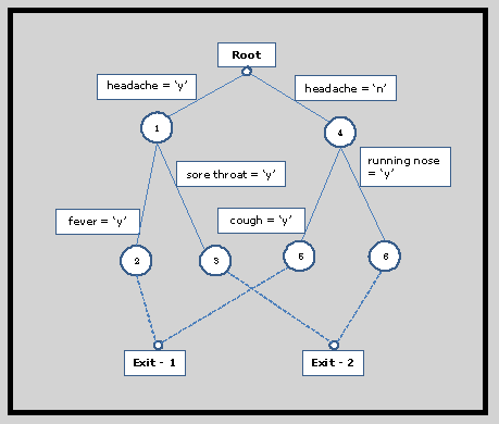 Path-2: Root; Node 1; Node 3; Exit-2 => common cold